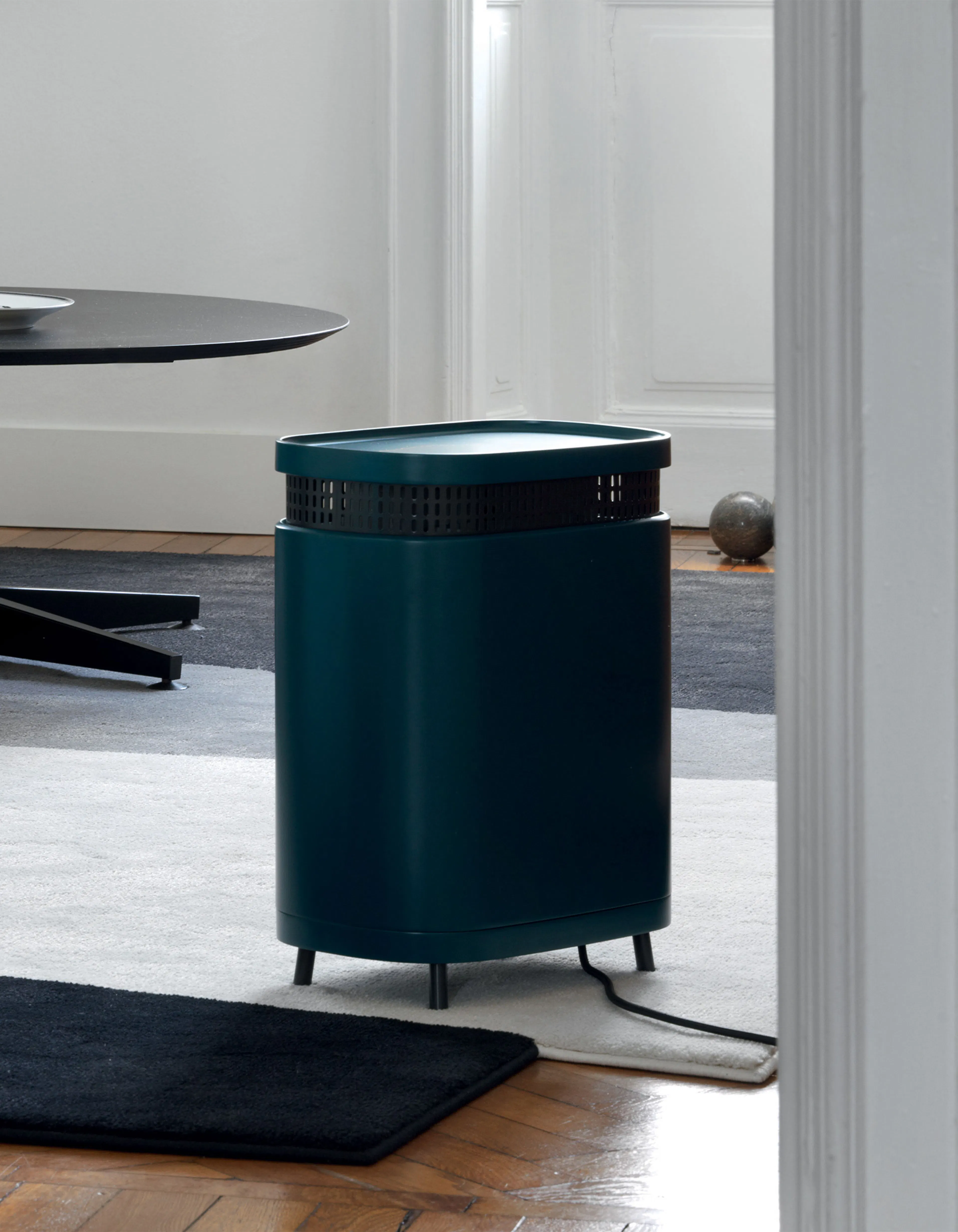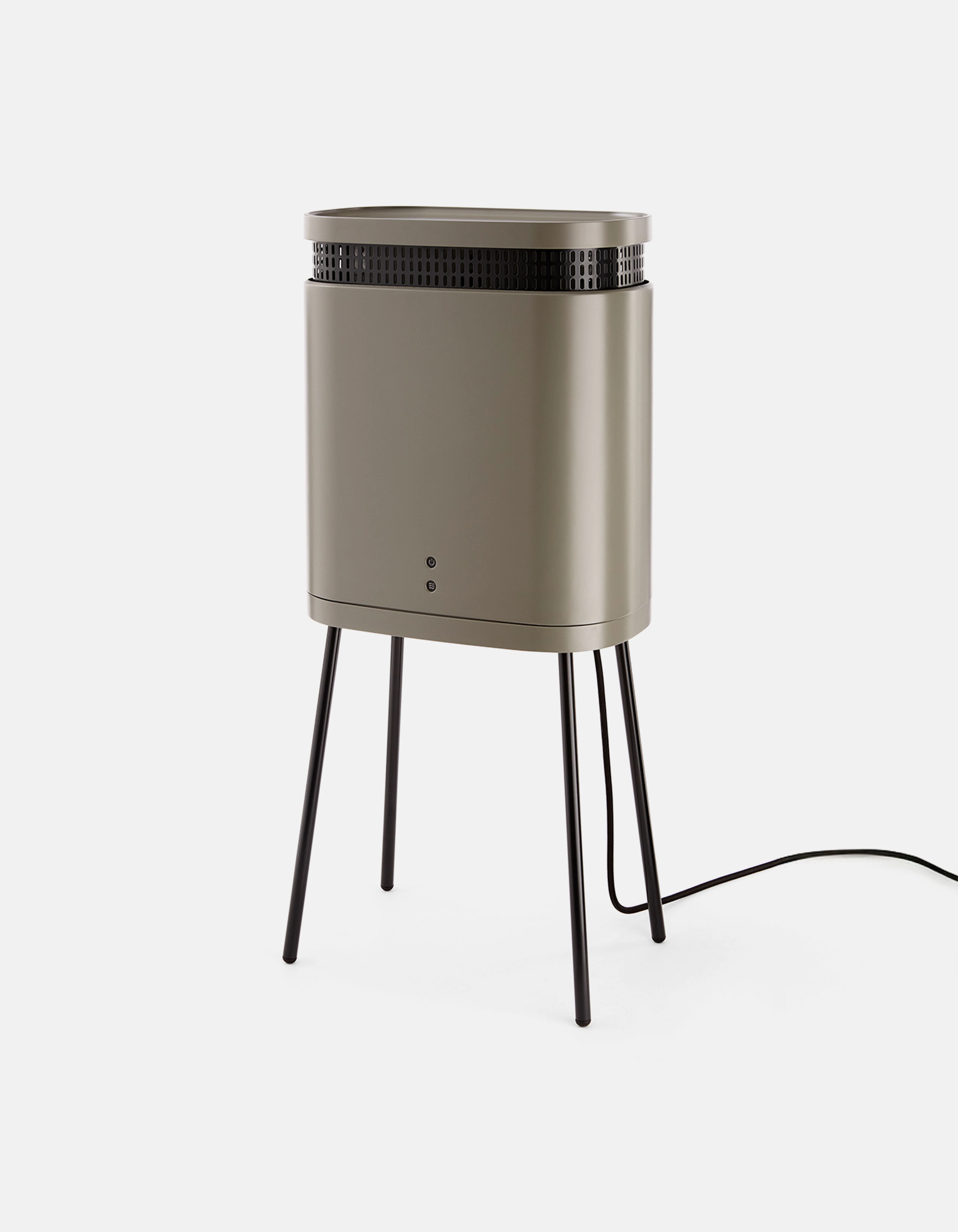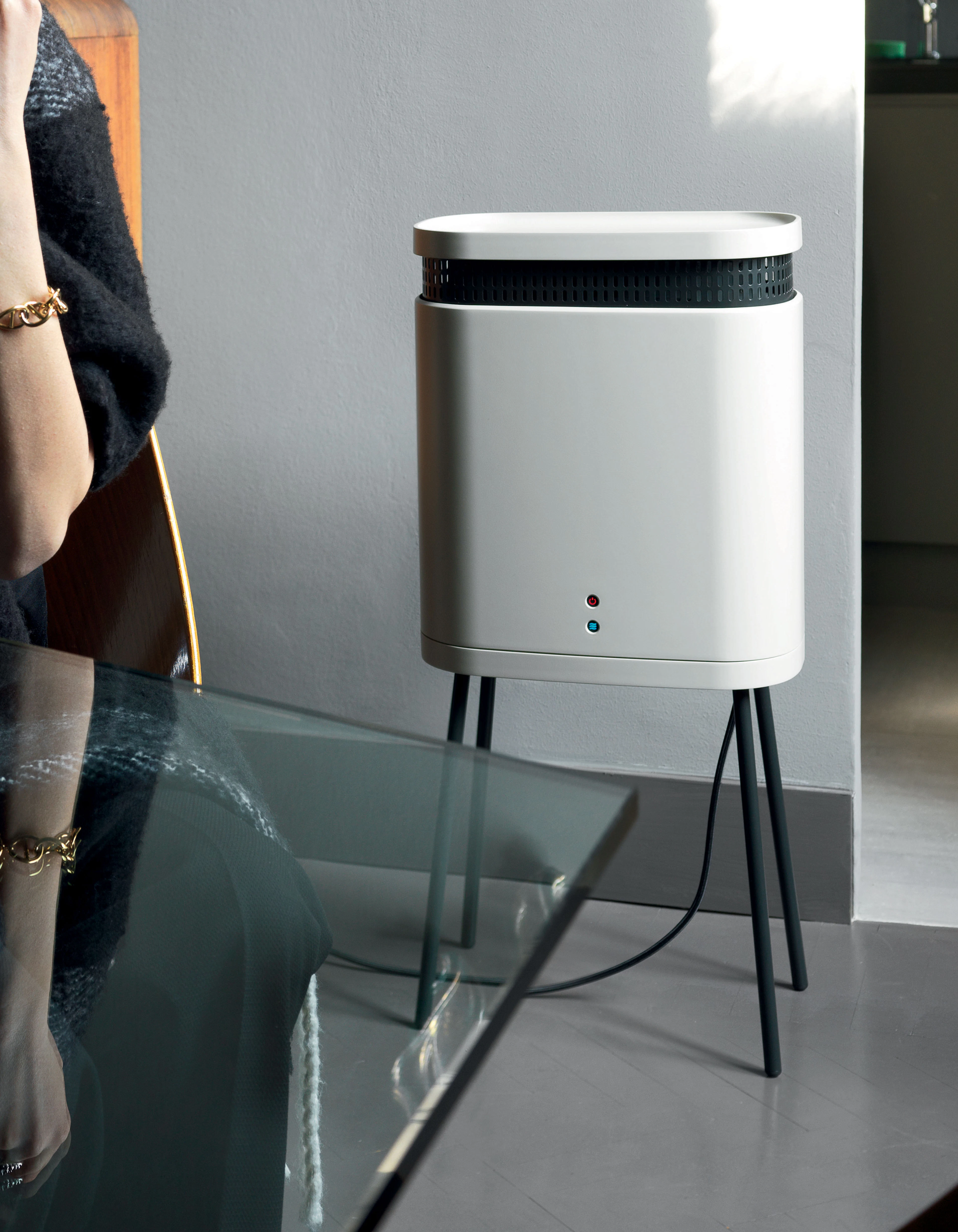 A polyurethane shell encloses a high-performance heating element and active carbon F7 filter that removes odours, pollen, mould, and bacteria. Complete thermal insulation keeps the surface cool to the touch. Touch-sensitive controls and Bluetooth connectivity enable adjustments through a dedicated app, merging digital convenience with tactile interaction in seamless harmony.
