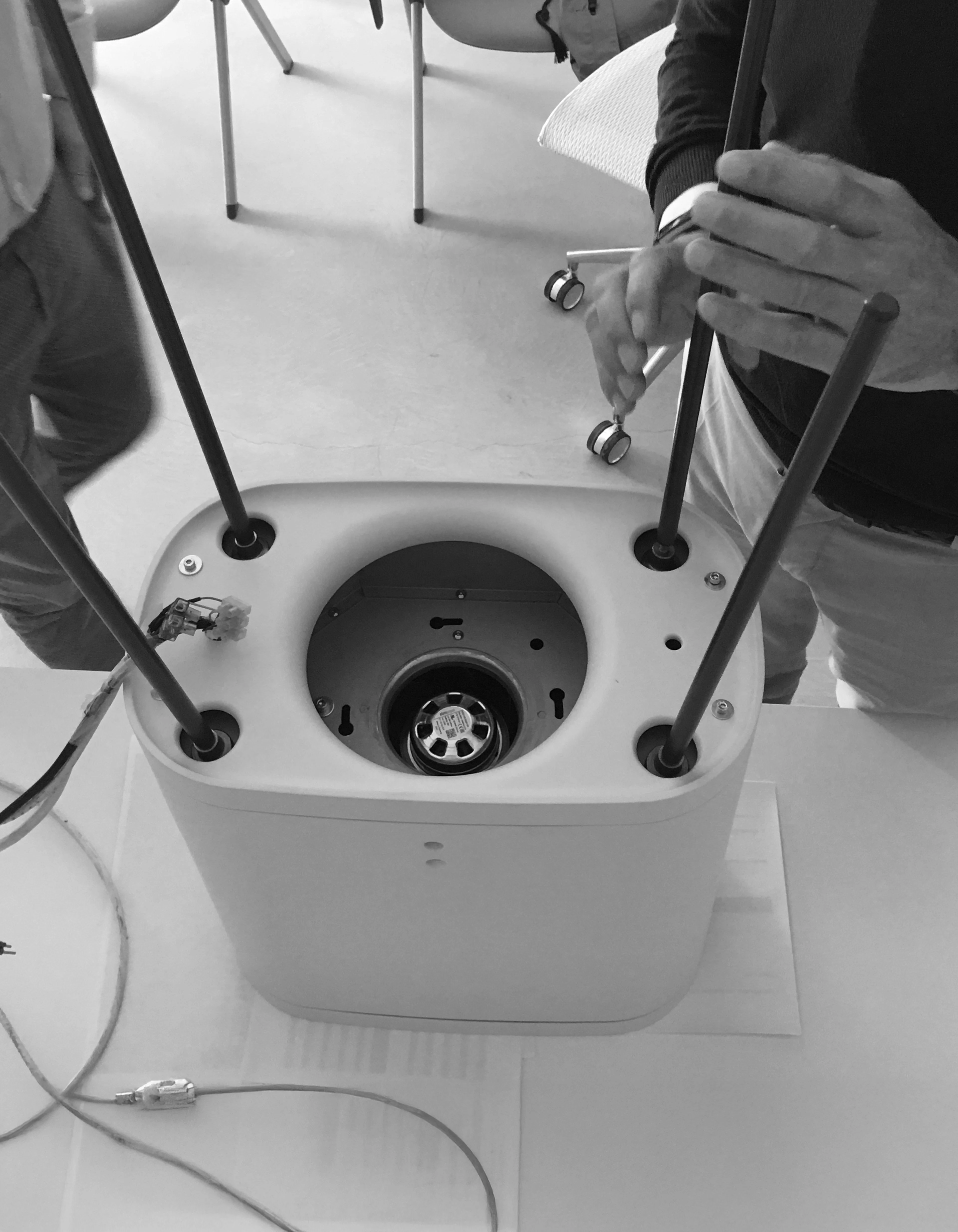 Available in multiple colours with interchangeable legs of varying heights, Astro adapts visually and functionally to diverse environments. Its simplicity allows it to blend quietly or stand confidently within professional spaces. By uniting technology and emotion, Astro redefines comfort as presence, movement, and attentive care in everyday life.