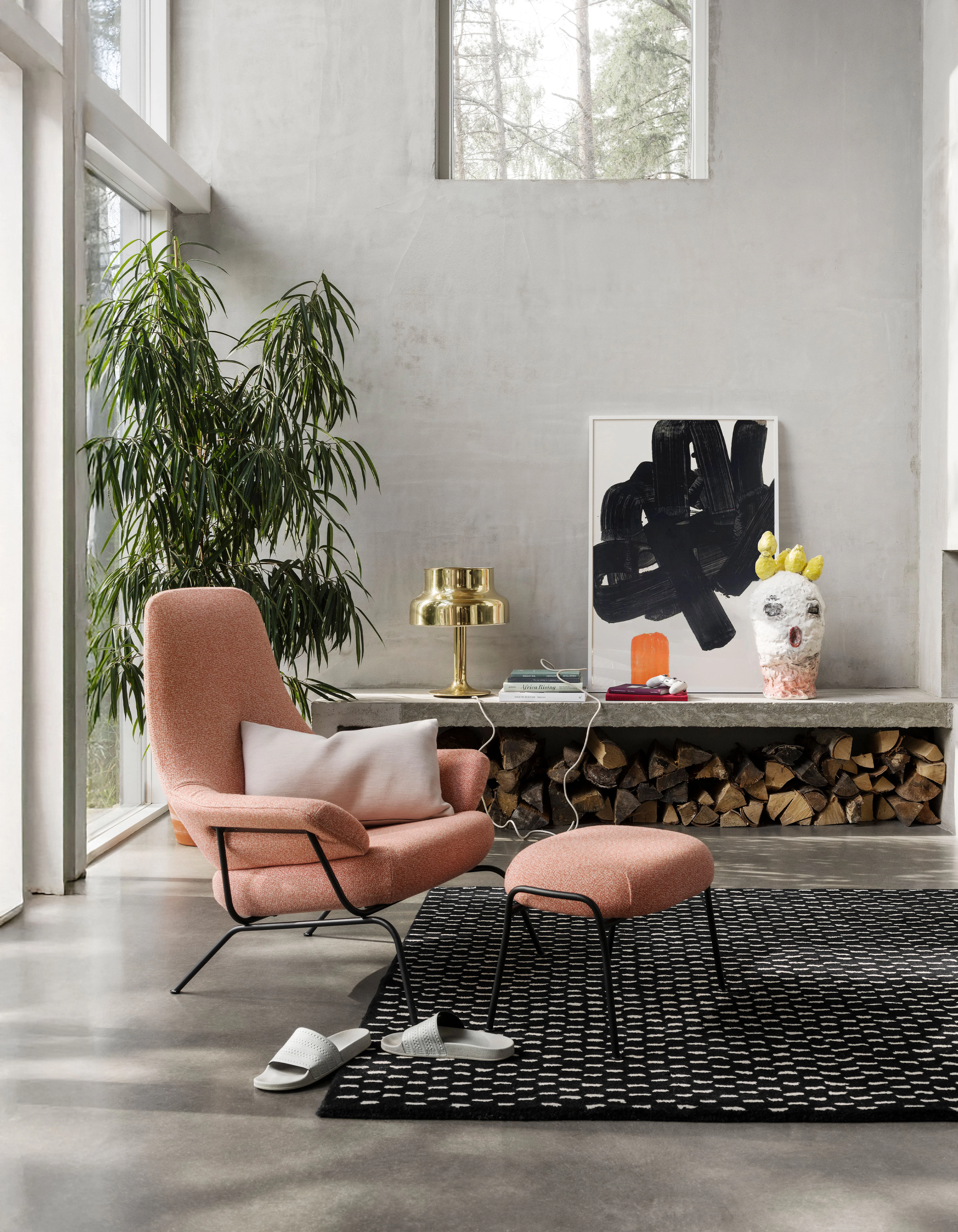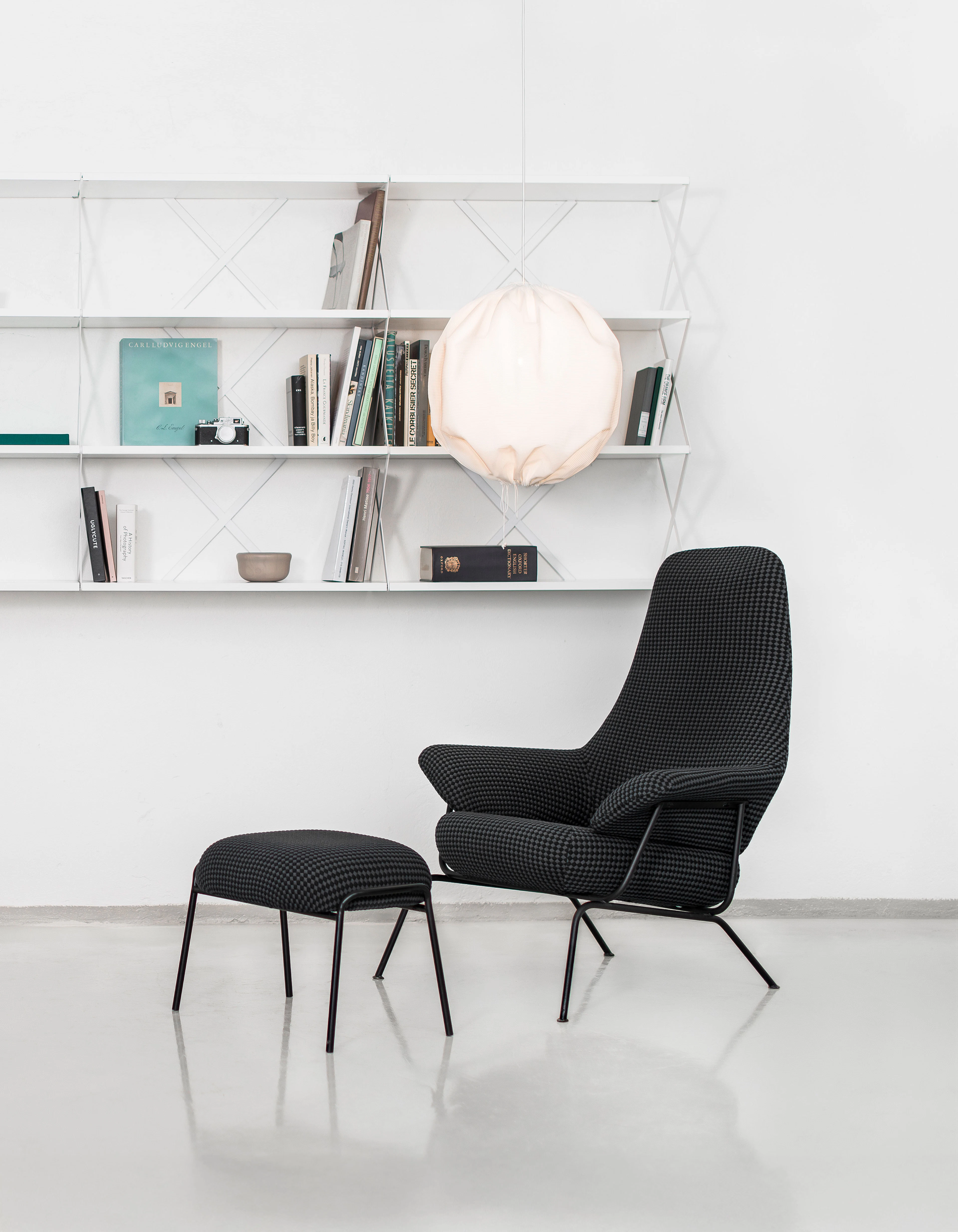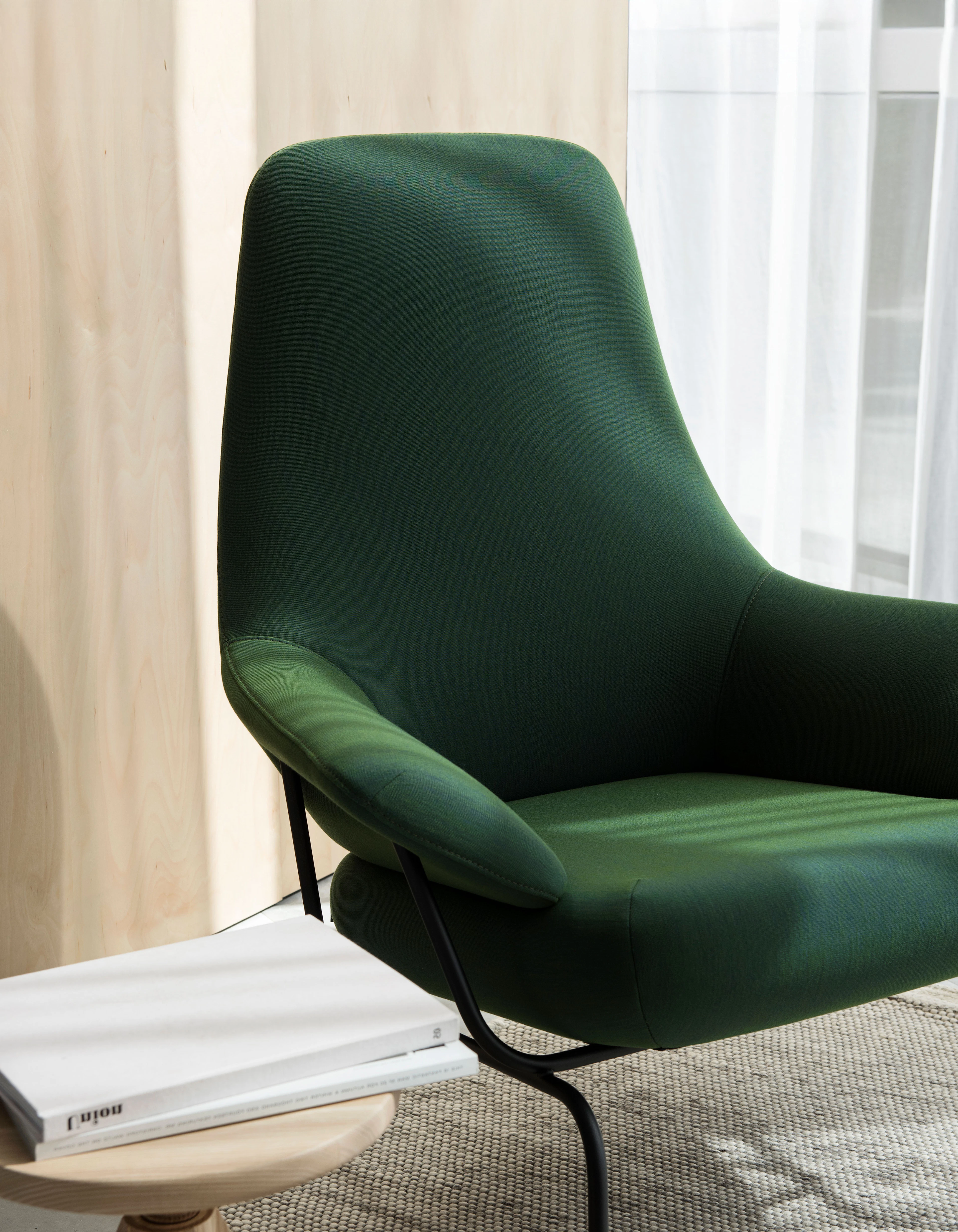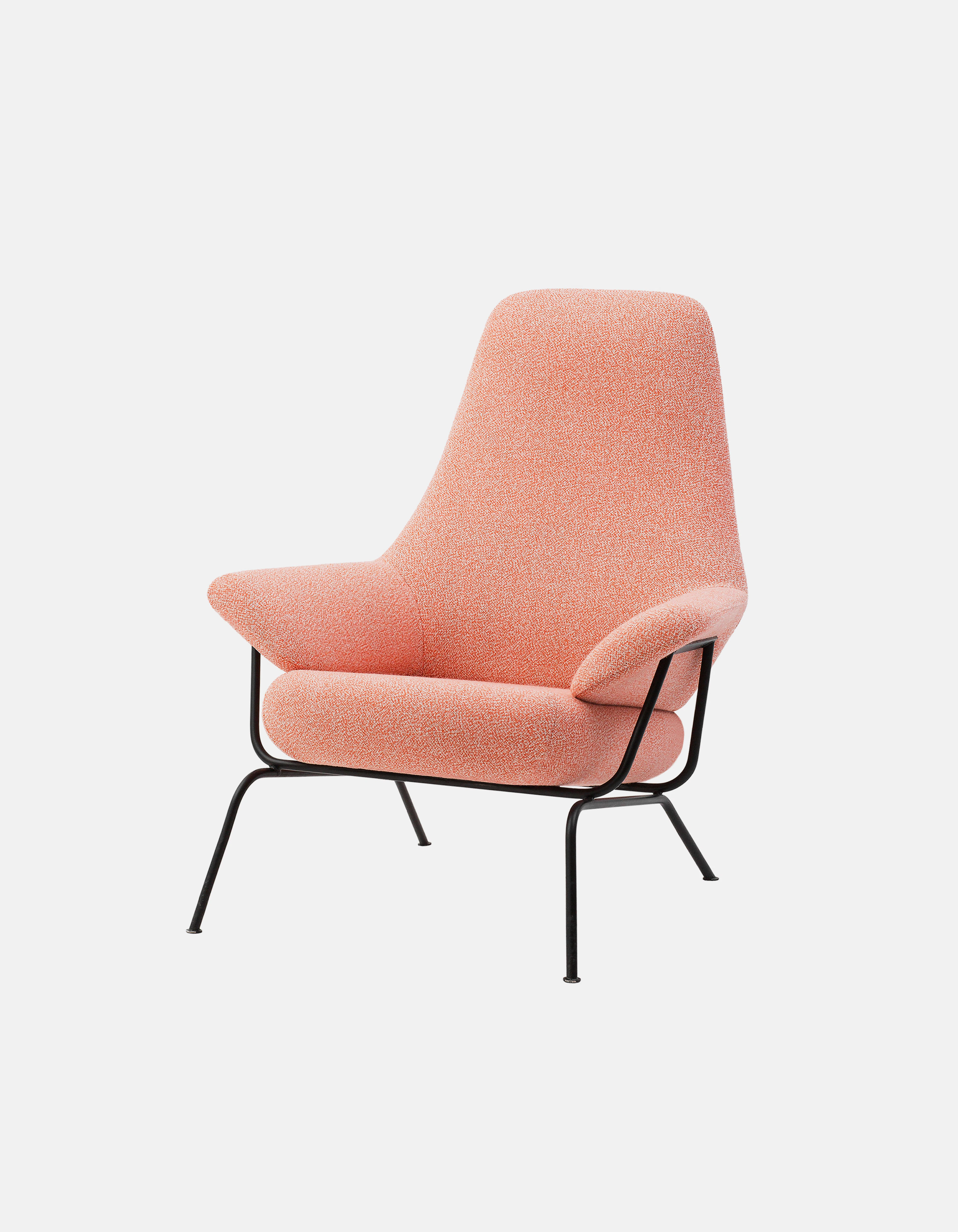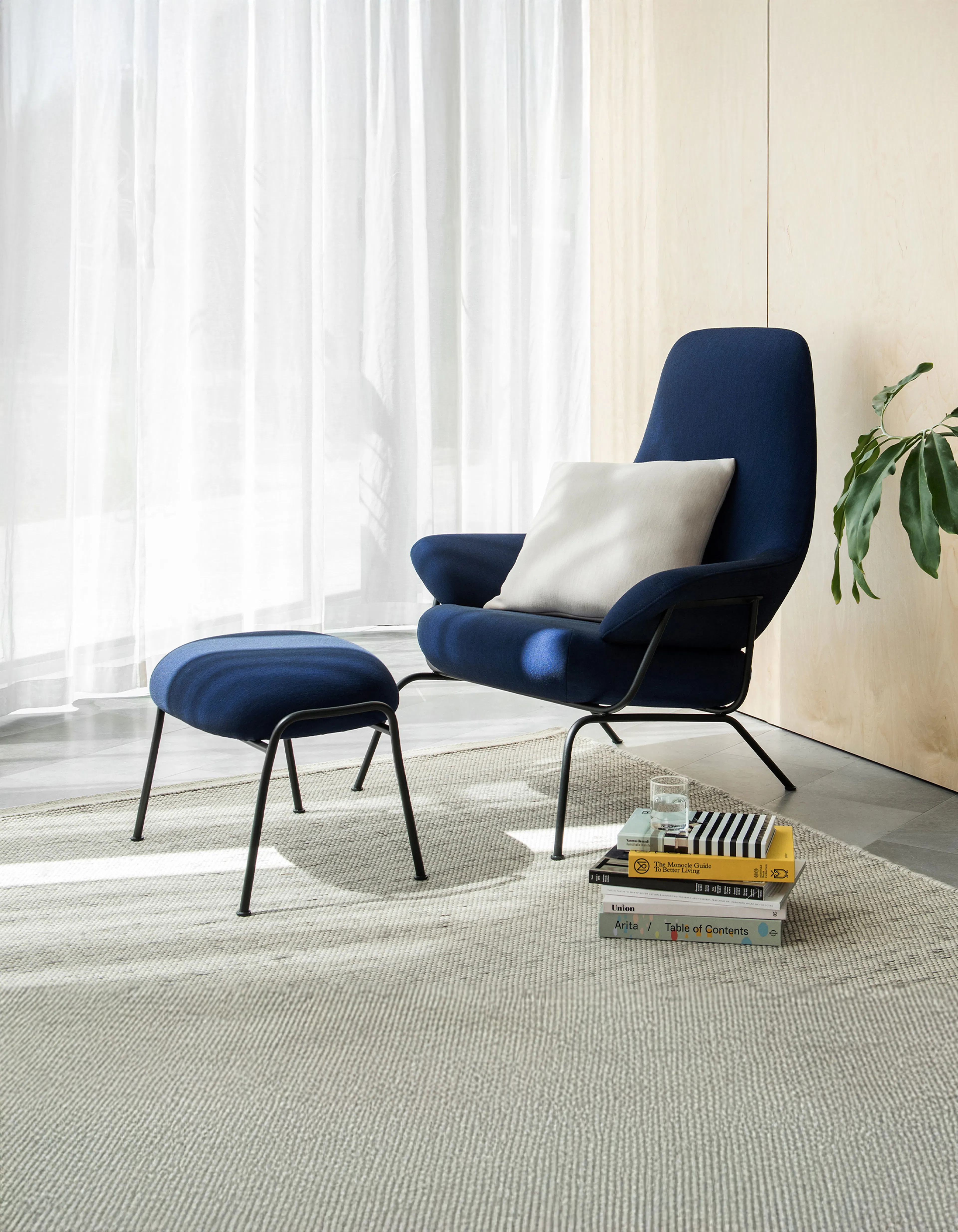 Developed for online retail, Hai was designed for easy shipping and intuitive assembly without sacrificing warmth or integrity. A slender metal frame supports a padded shell that curves gently around the sitter, offering openness and enclosure. The form feels familiar yet distinct, like a classic armchair refined into a modern gesture, while the ottoman extends comfort through proportion and visual harmony.