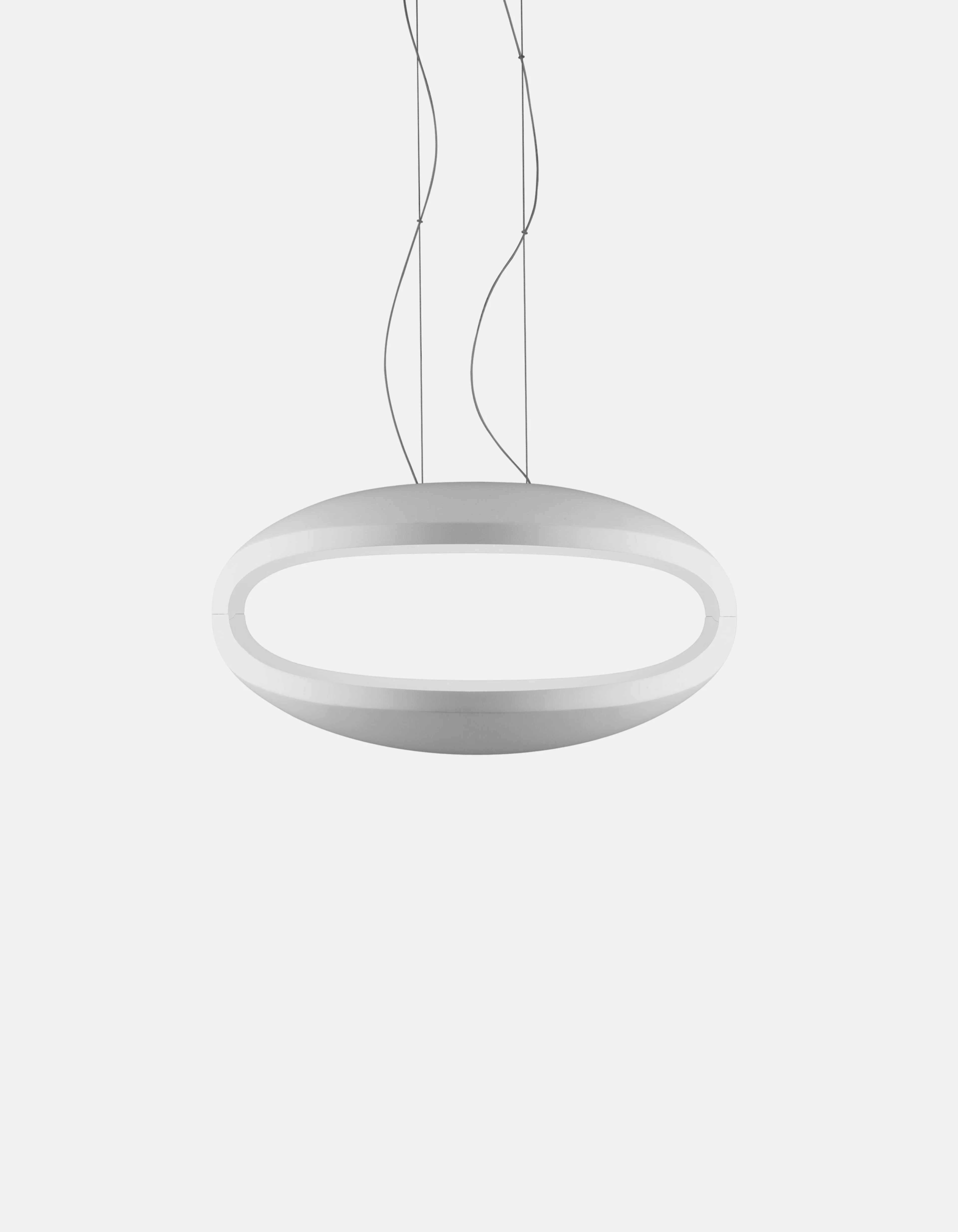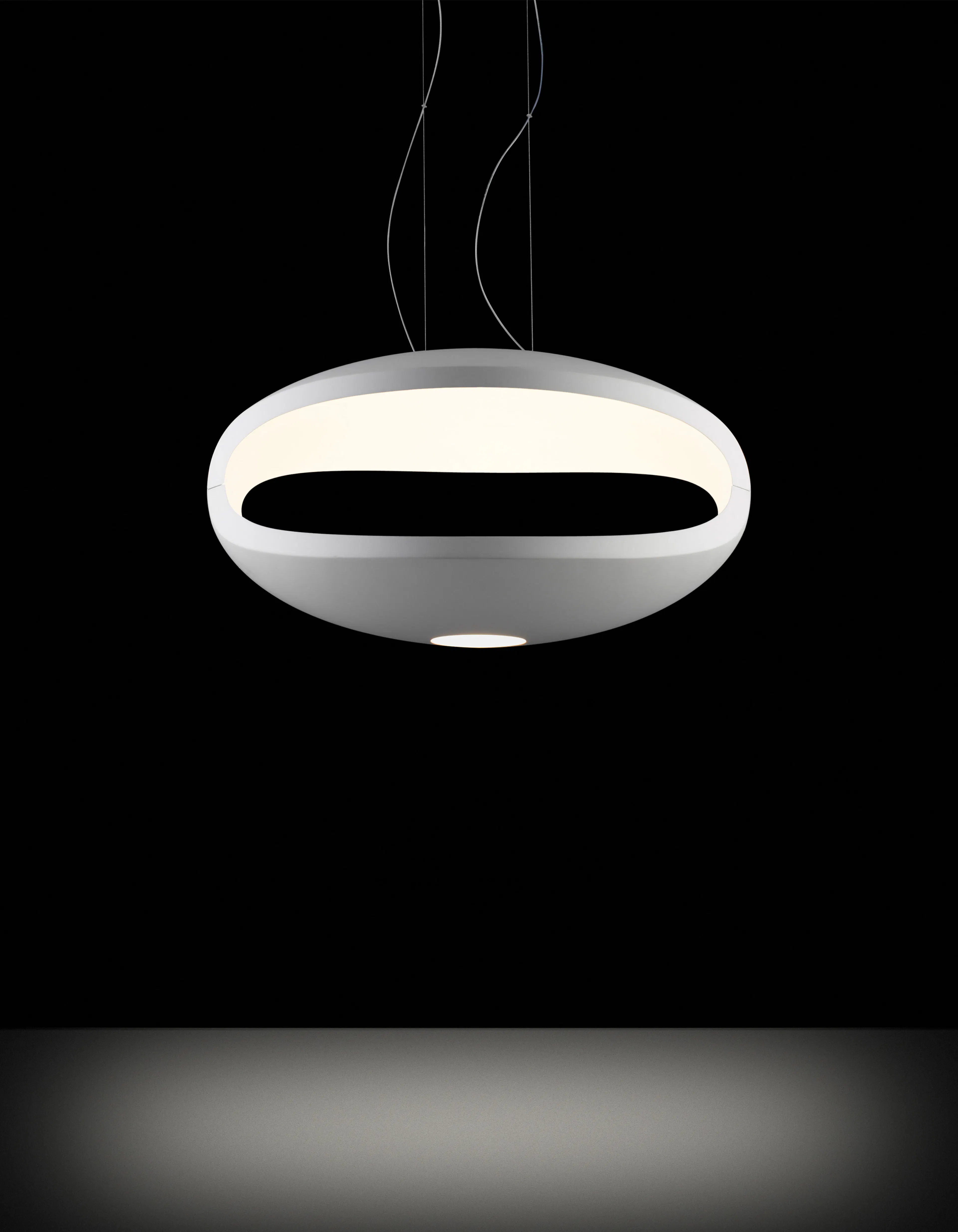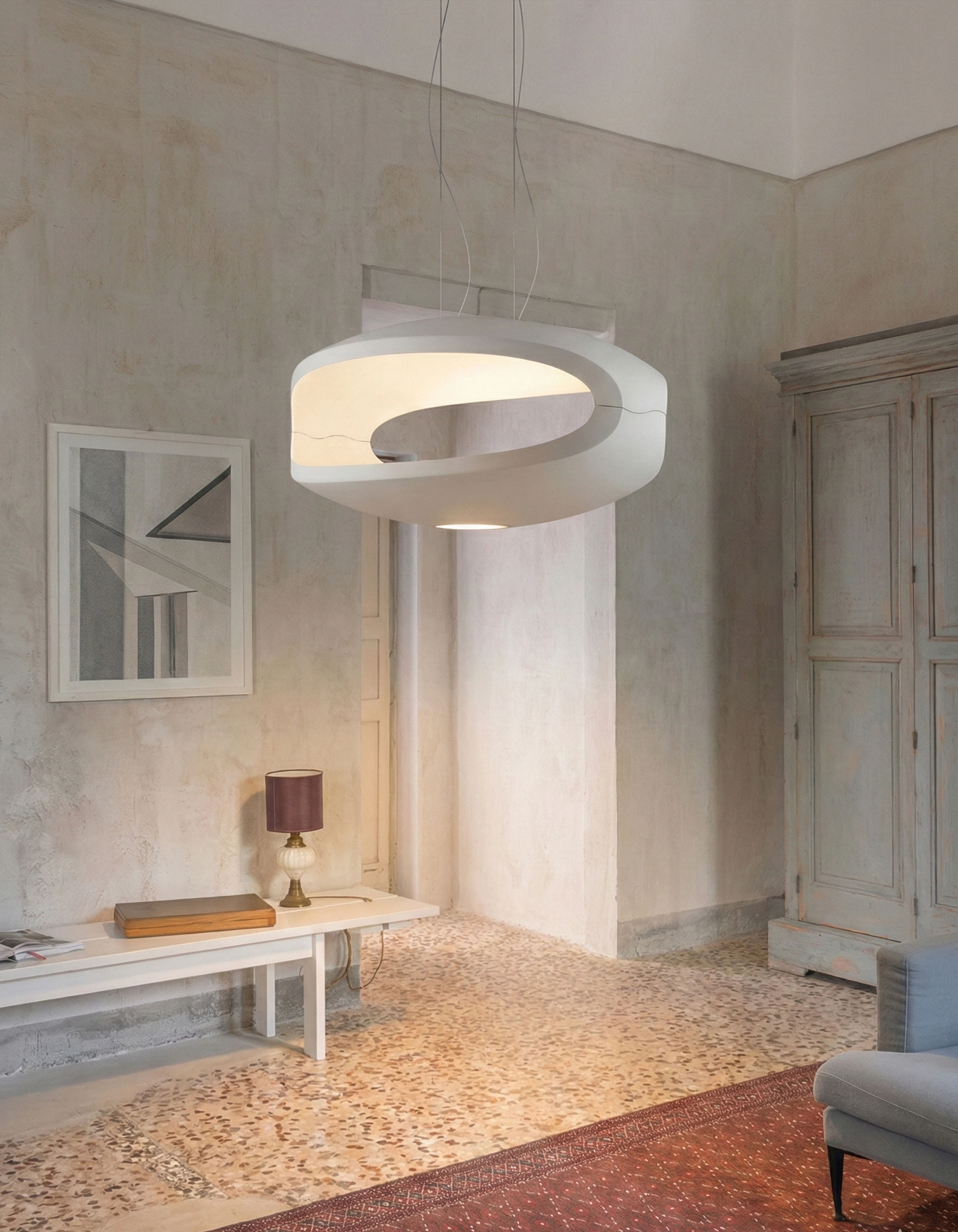O-Space was designed in collaboration with Gianpietro Gai for Foscarini in 2003, marking the beginning of a lasting relationship with the Venetian lighting company. It quickly became one of the brand’s most recognizable pieces, admired for sculptural clarity and technical innovation. From its inception, O-Space embodied a contemporary approach that united experimentation, material research, and expressive simplicity within a singular luminous form.