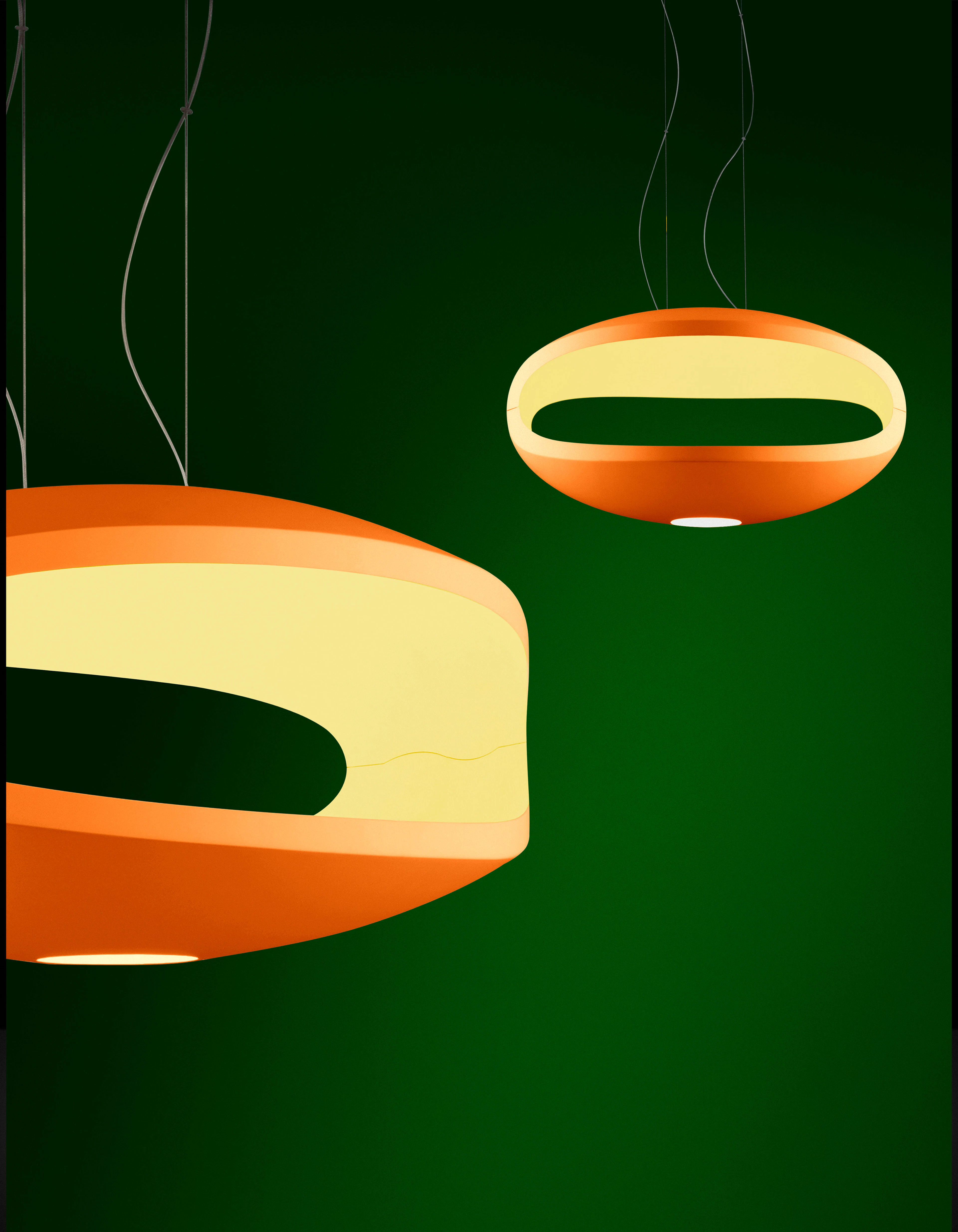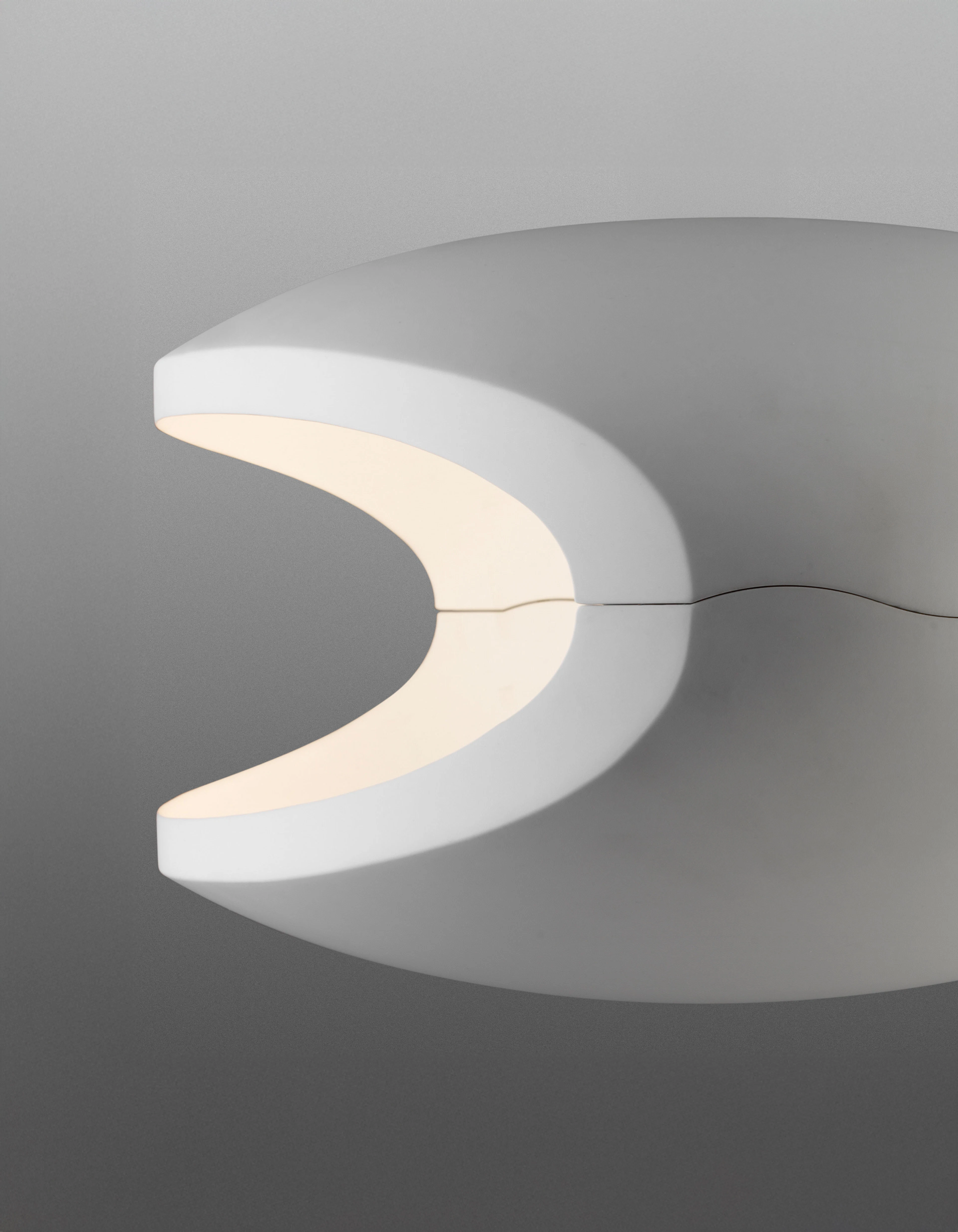 Developed through extensive material experimentation, O-Space introduced rigid polyurethane foam into Foscarini’s production for the first time. Originally conceived as a sphere, it evolved into its distinctive flattened profile through refinement. More than a fixture, O-Space remains a spatial experience, exploring boundaries between structure and void, light and perception.