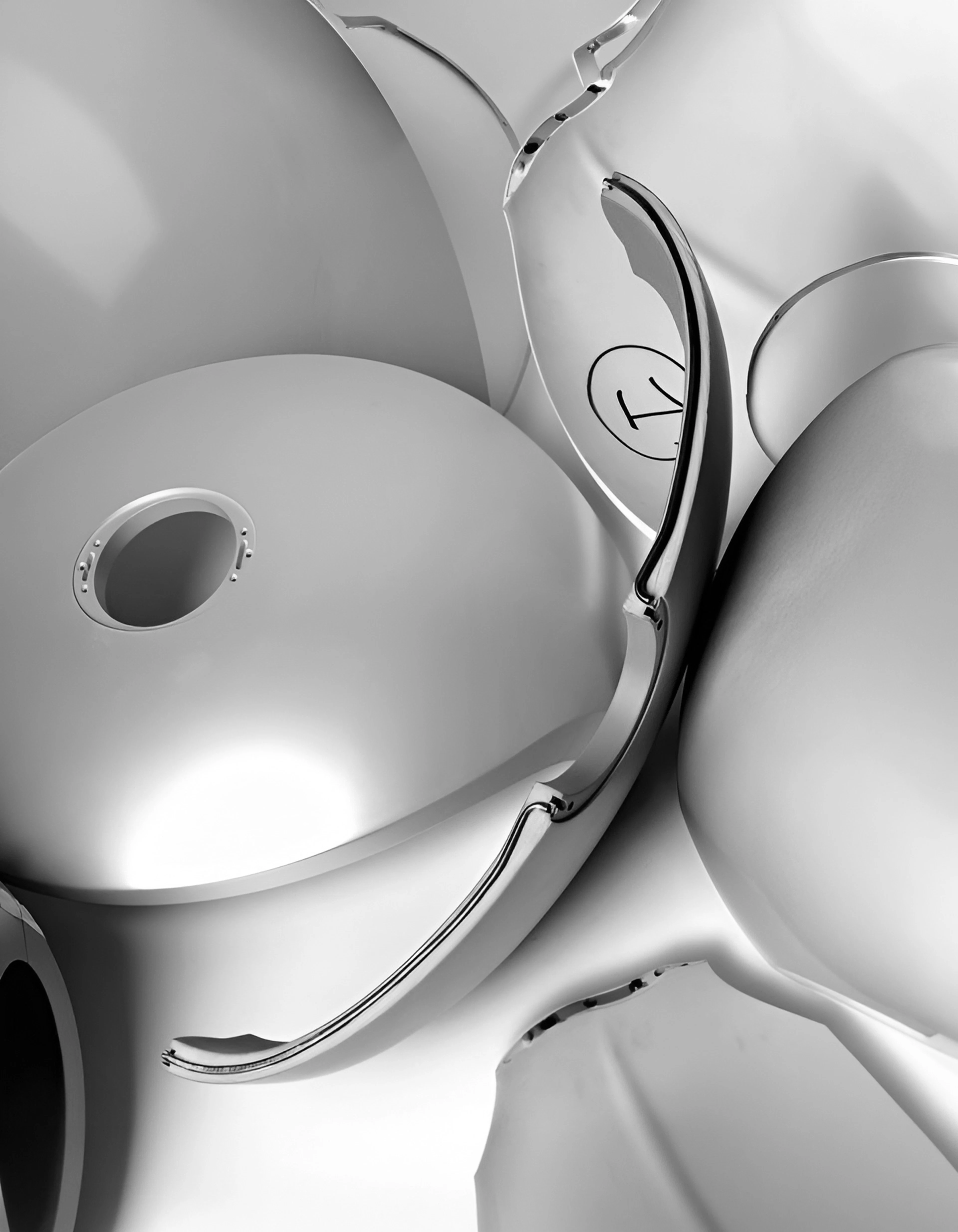 Crafted from high-density expanded polyurethane, the body combines fluid curves with structural stability, resulting in a suspended form that feels solid yet weightless. The tactile surface and continuous outline suggest movement even in stillness. Concealed wiring and an innovative diffusion system reflect careful engineering, merging emotional warmth with technical precision in a seamless architectural gesture.