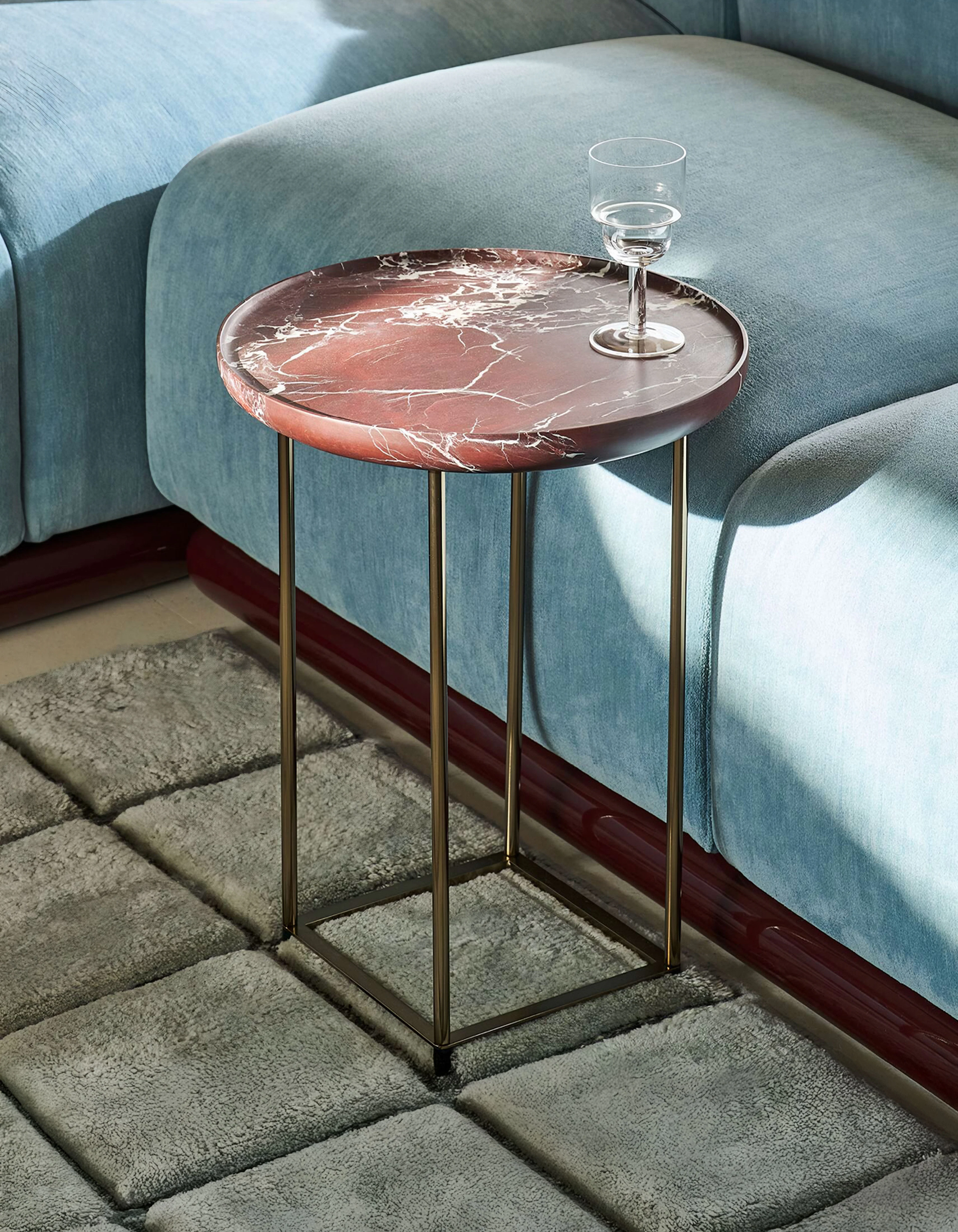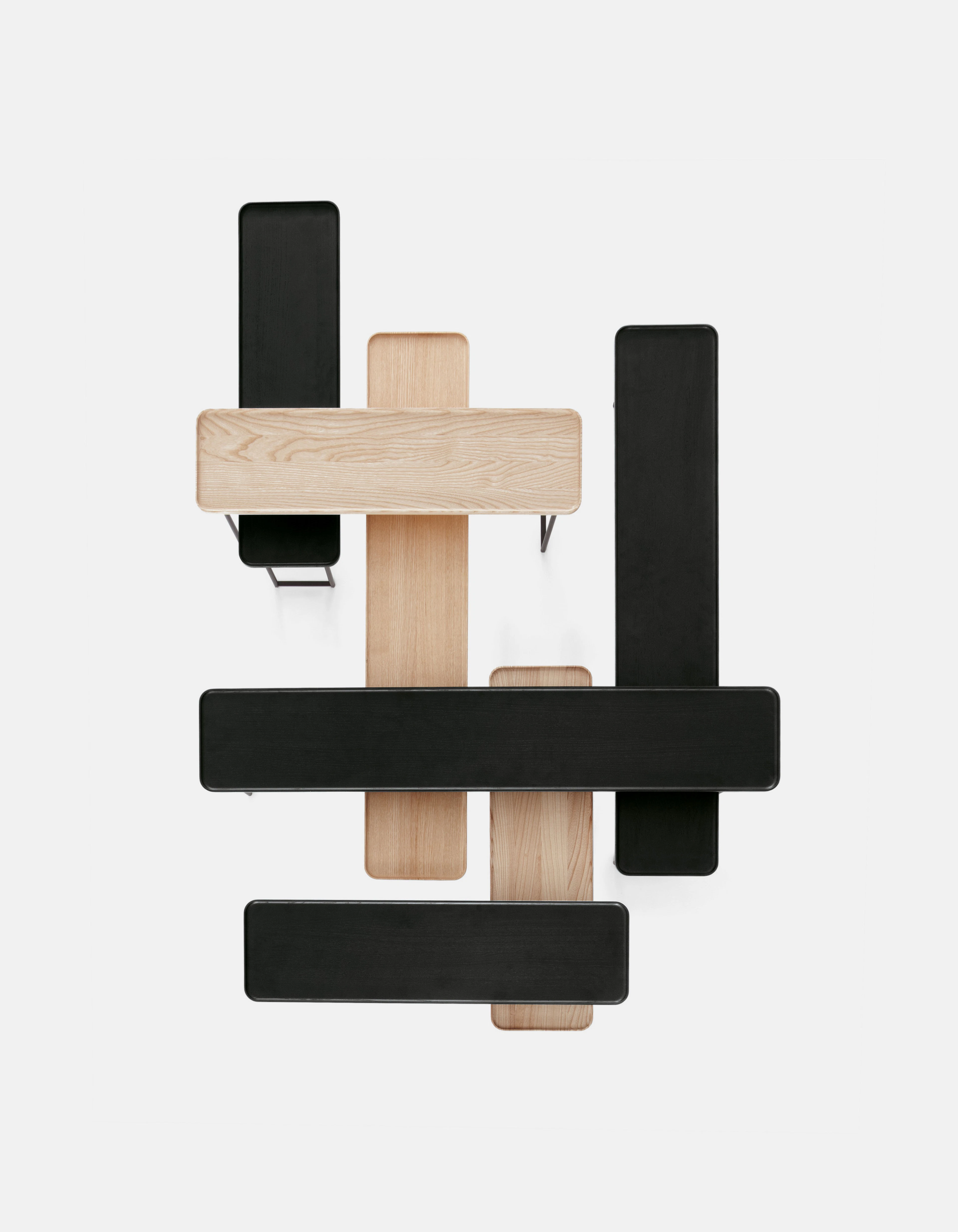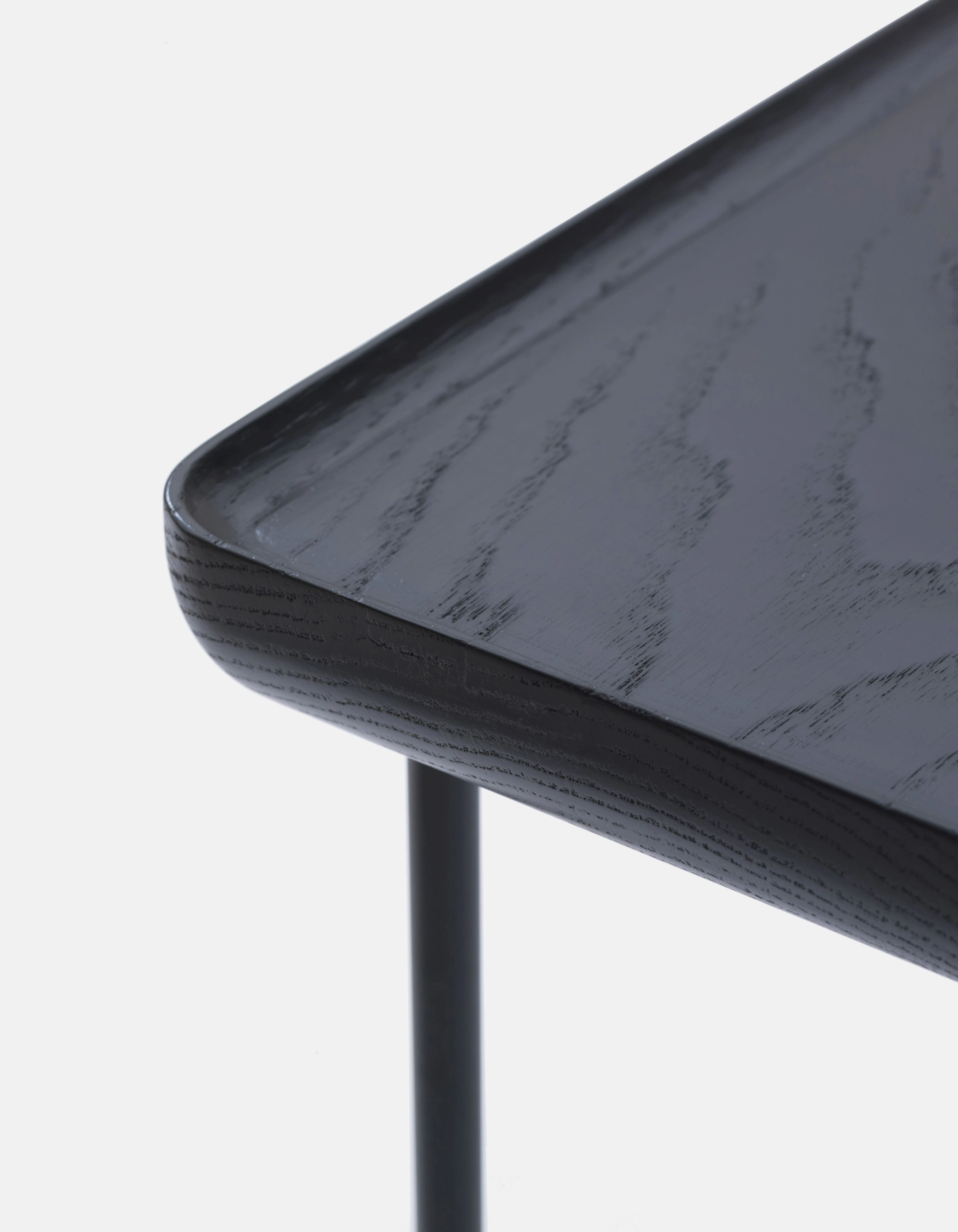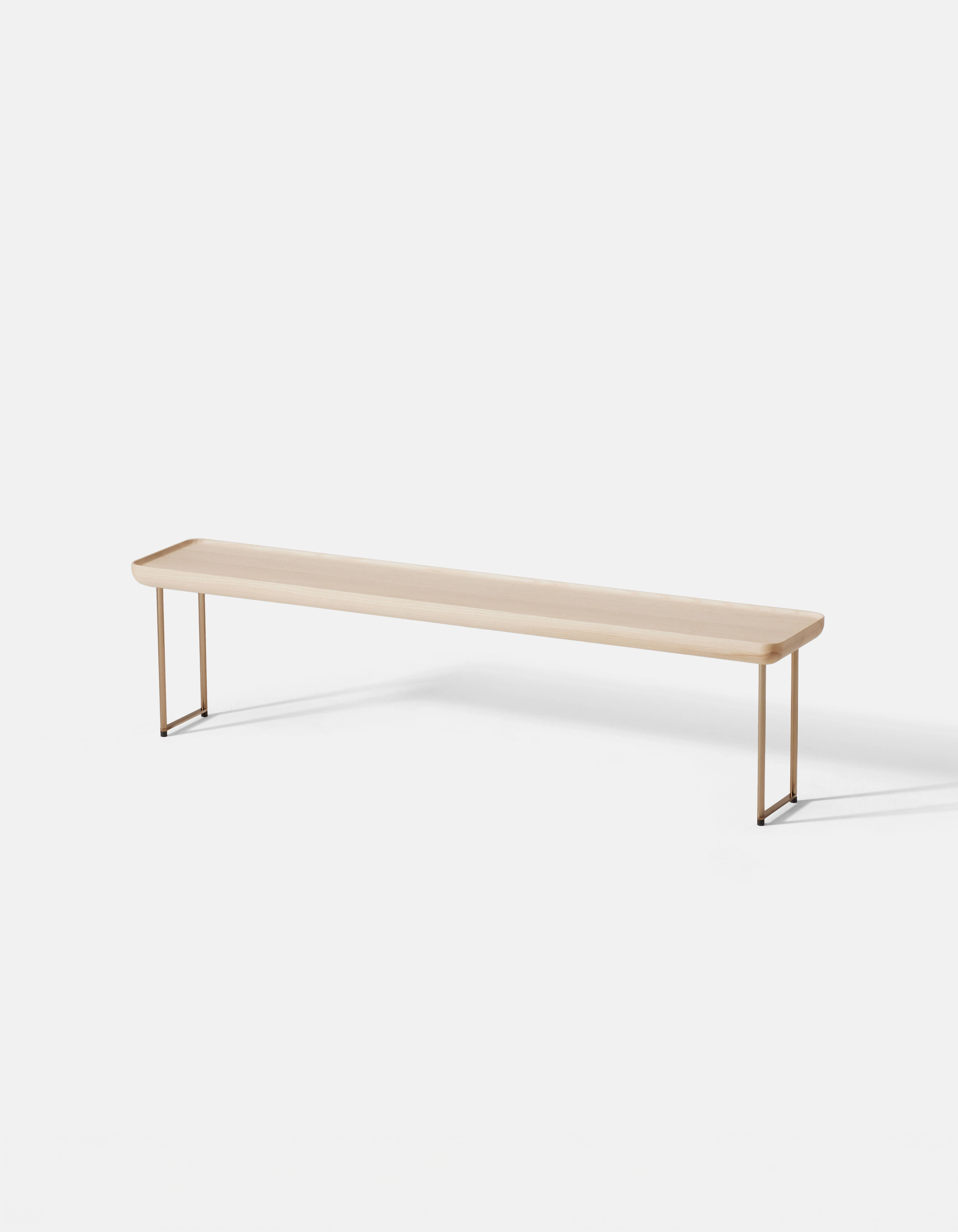 As the collection evolved, it retained its essential character while expanding its material and compositional range. The 2014 iteration introduced new finishes that paired slender metal legs with tops in ash wood and Carrara marble. The slightly folded edges of each surface evoked the precision of Japanese craftsmanship, adding a tactile sense of refinement to the clean geometry.