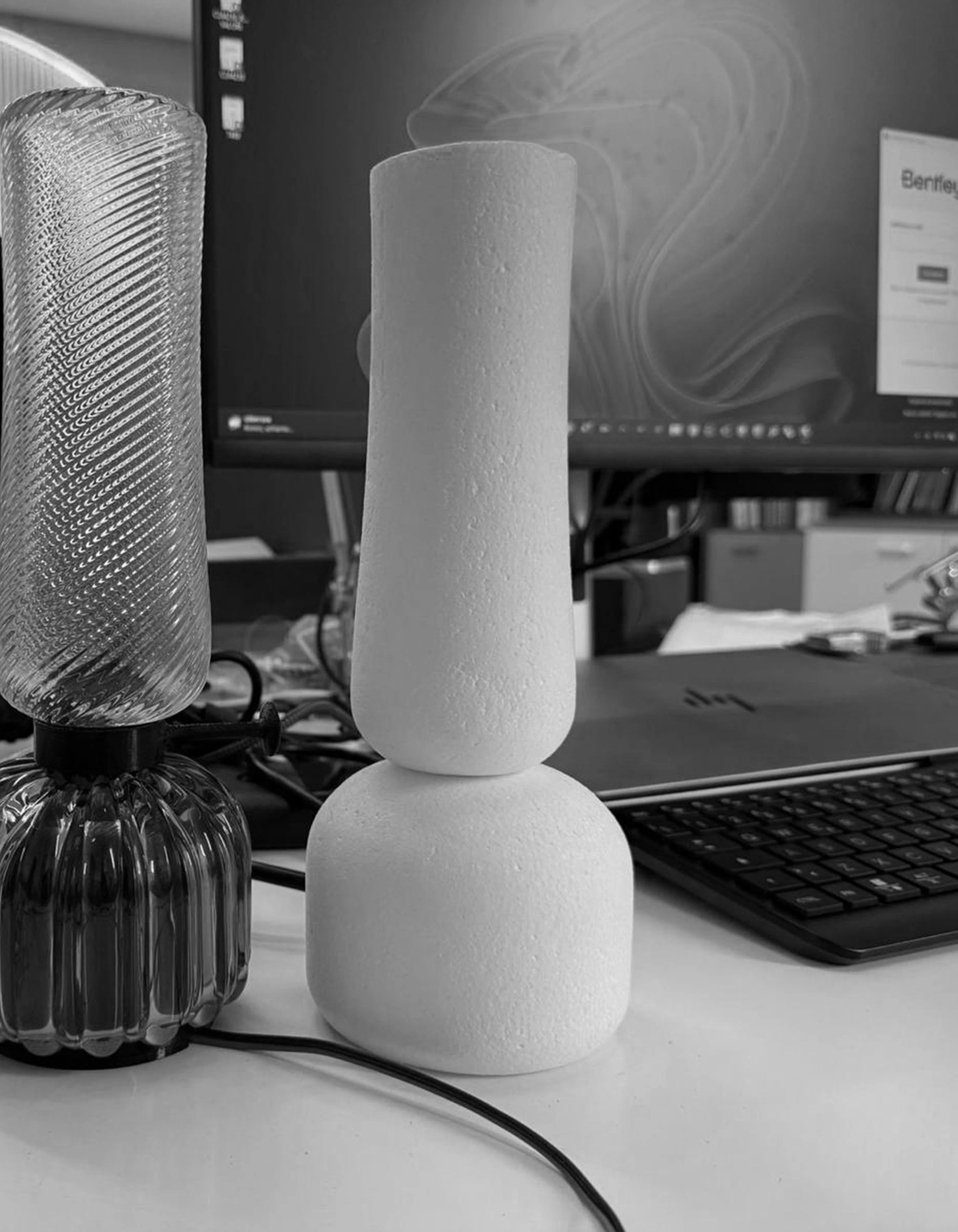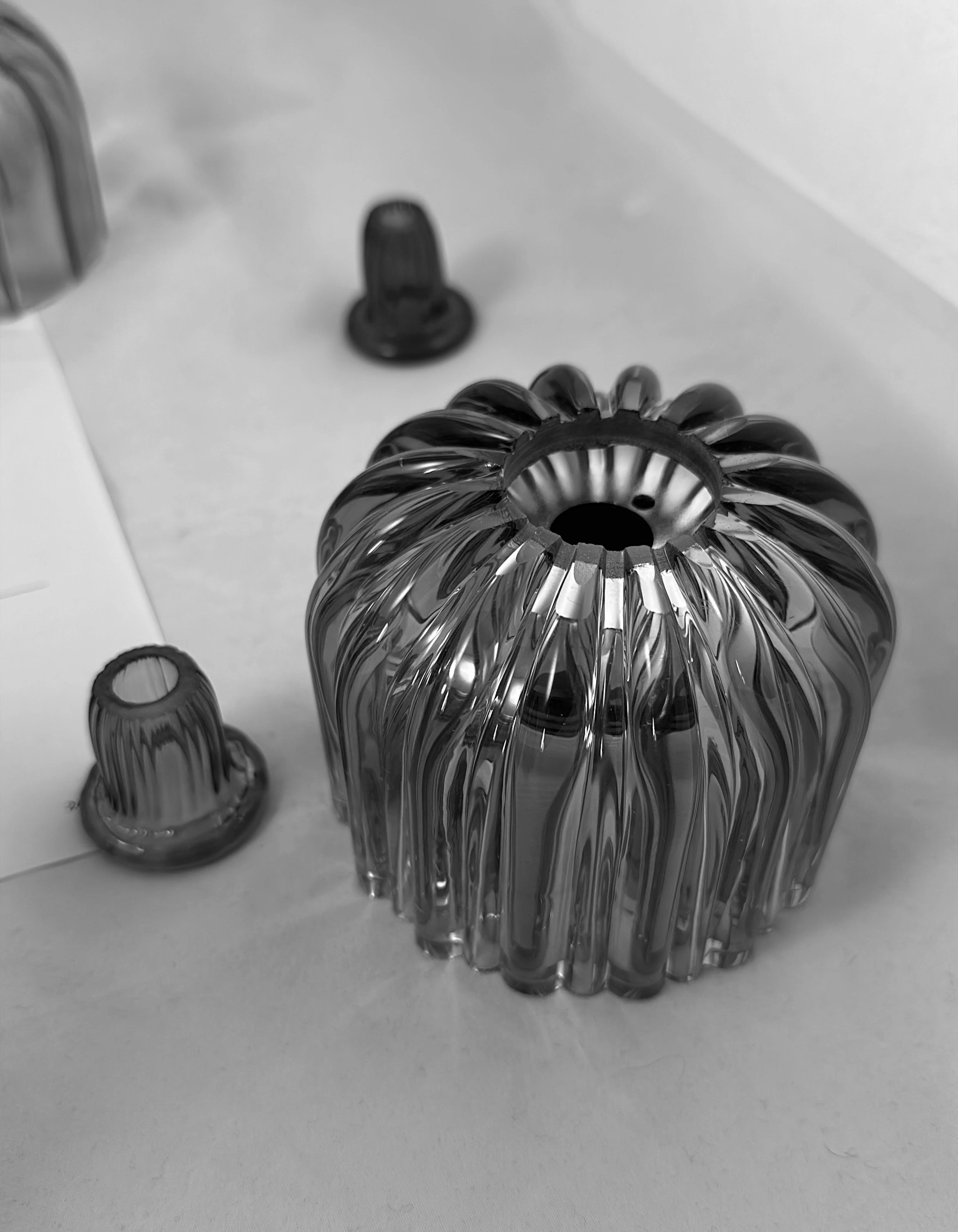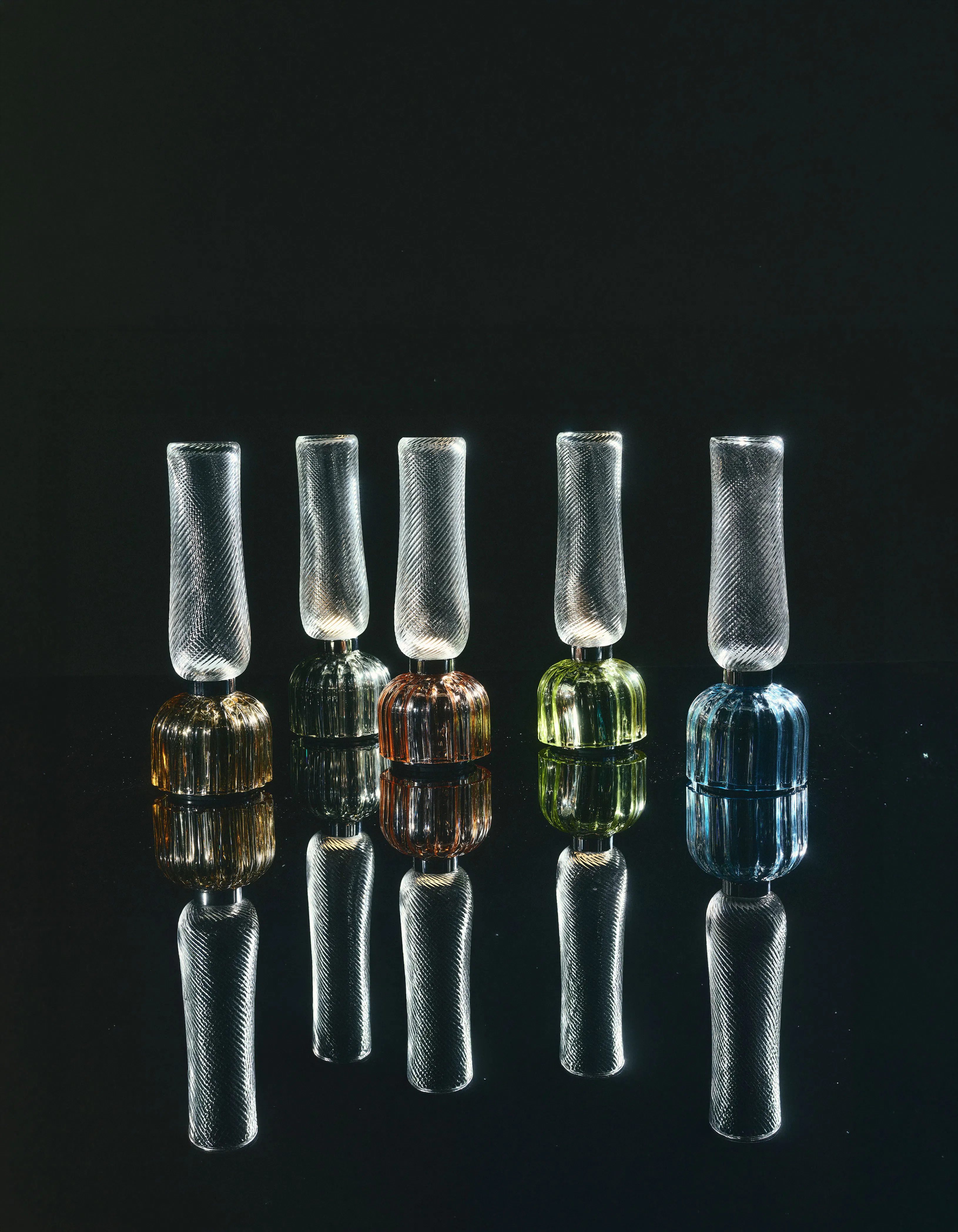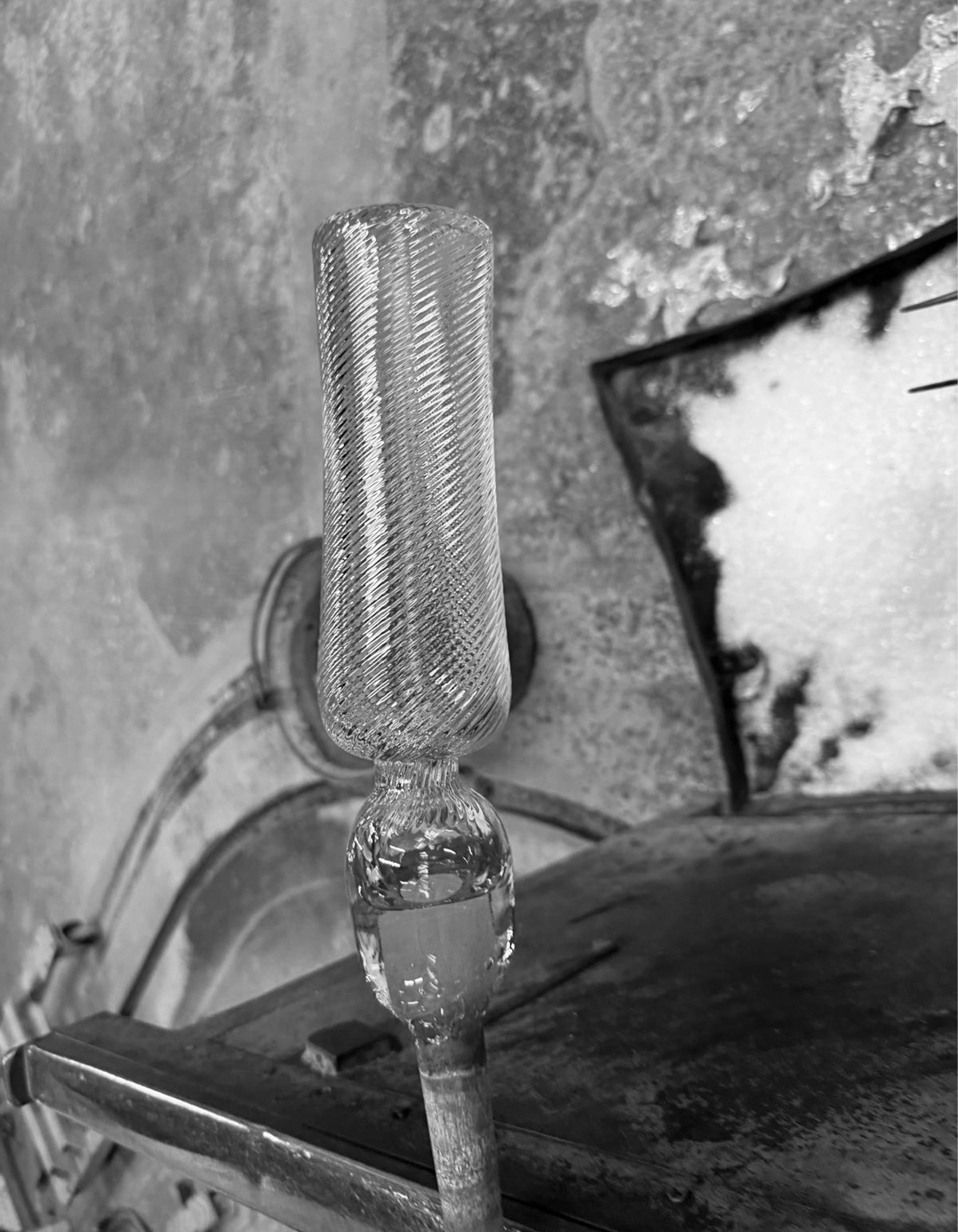 Mouth-blown, structured, controlled.