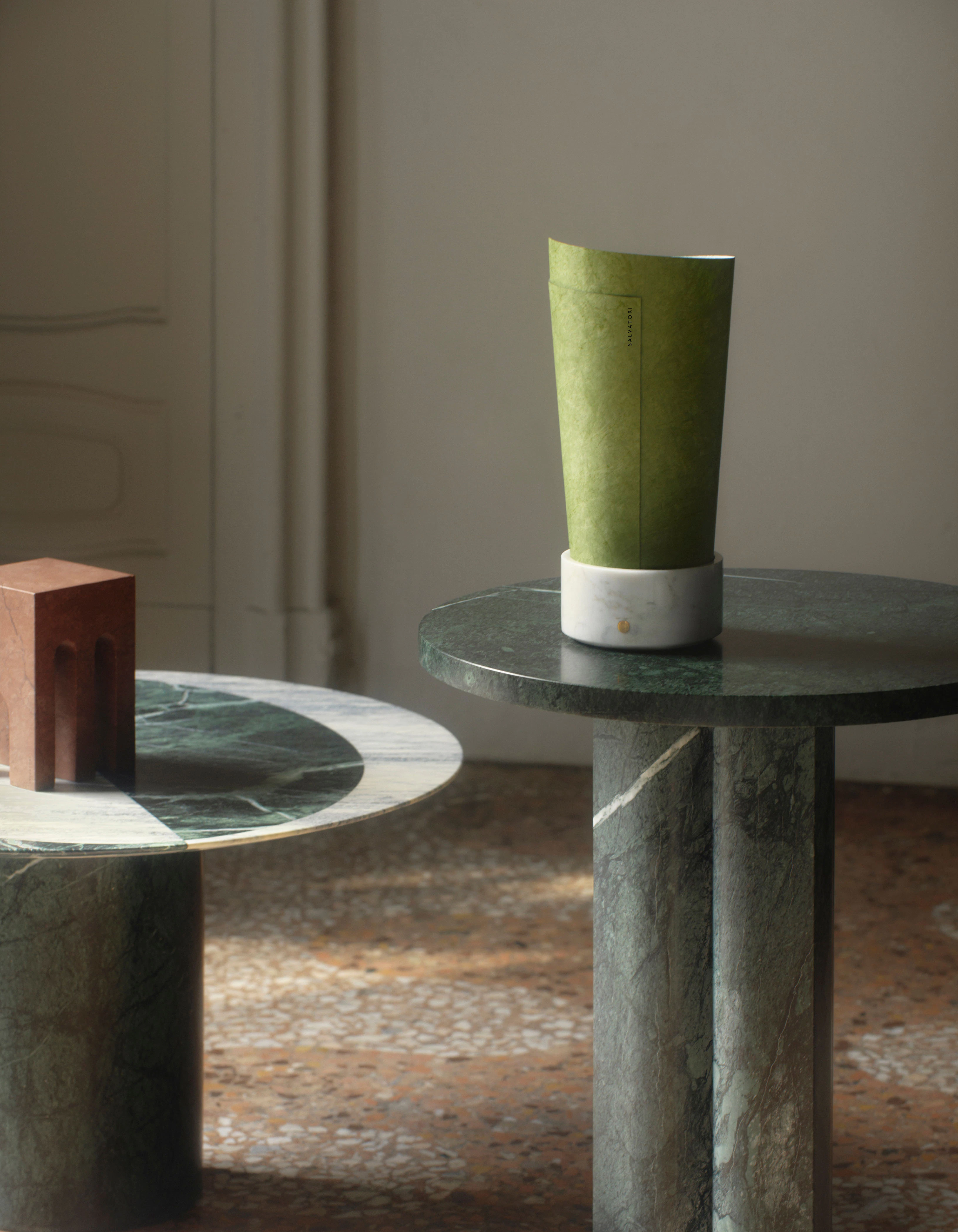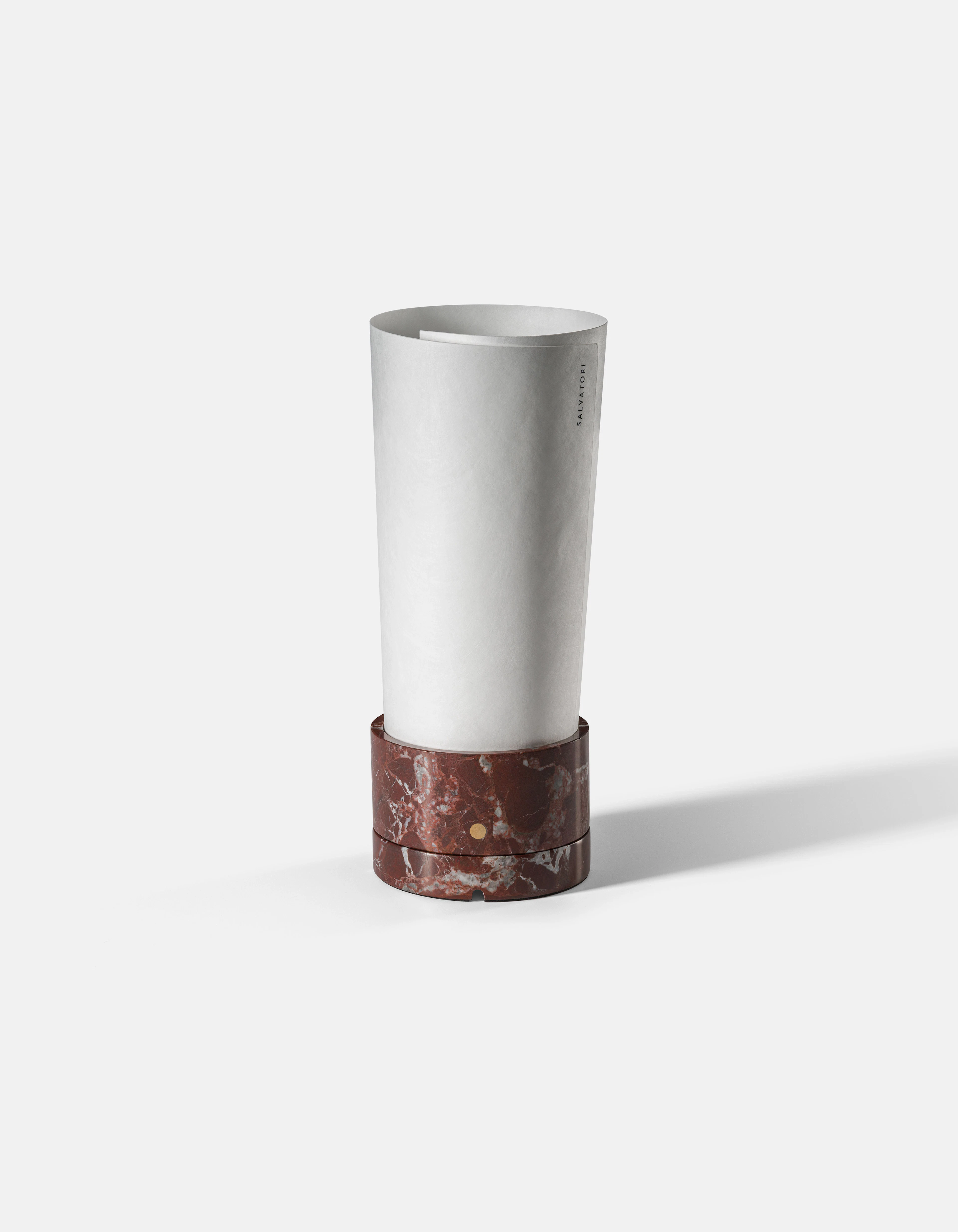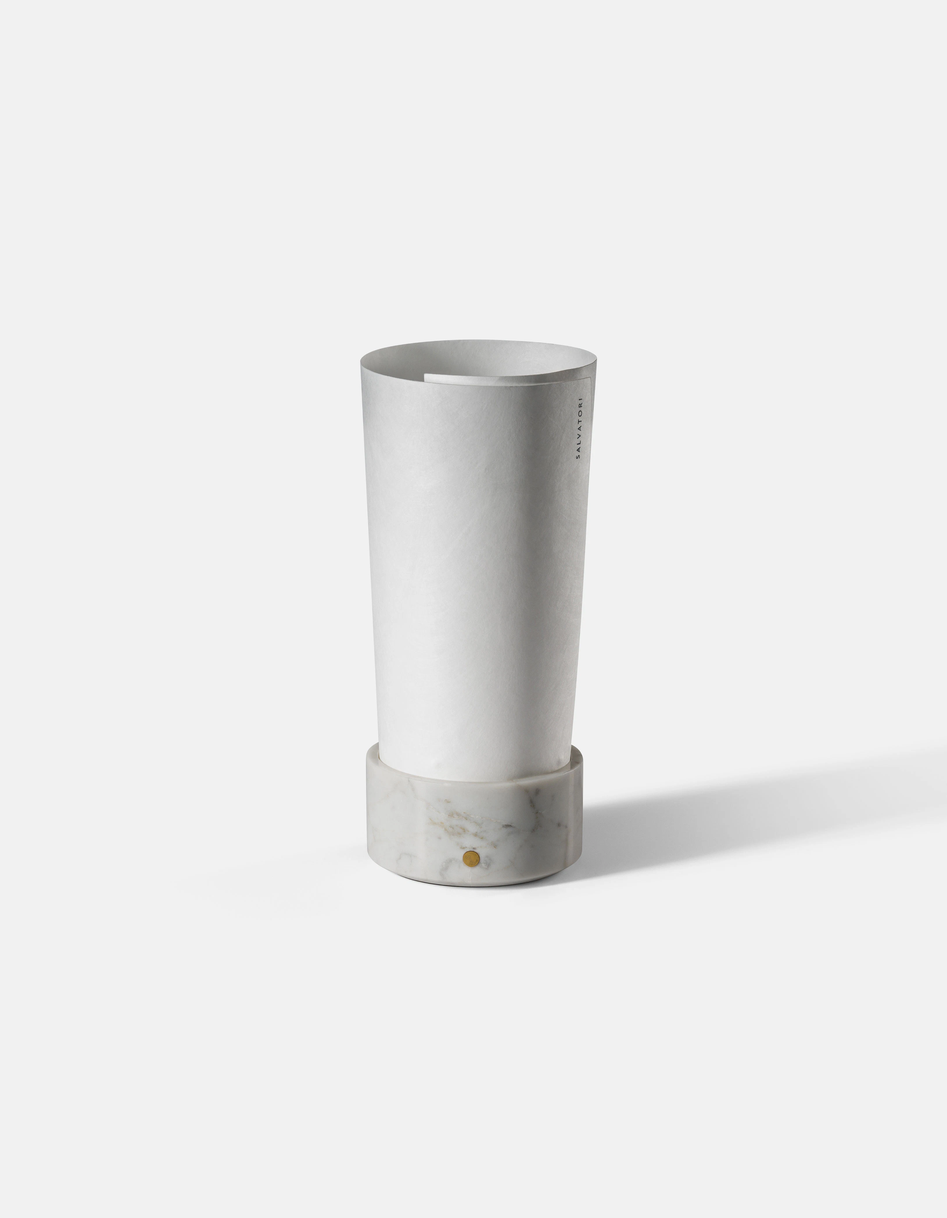 Teo was born from a spontaneous gesture: rolling a sheet of paper into a marble base, revealing an unexpected harmony between permanence and lightness. Created by Salvatori, the lamp captures the beauty of contrast, where material strength and poetic delicacy coexist. What began as an intuitive experiment evolved into a refined object that celebrates balance, transforming a fleeting creative act into a timeless expression of design and atmosphere.